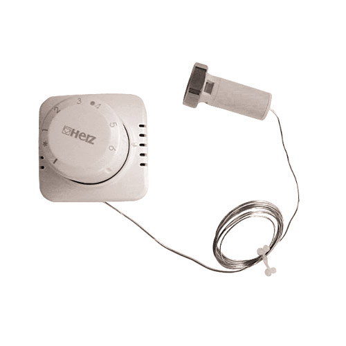 За монтажа во разводна кутија, на HERZ термостатски вентили. Со хидросензор, опсег на приспособување на температурата 6–28 °C, капиларна цевка и термостат. Заштита од смрзнување на 6 °C. Можено е ограничување и блокирање на посакувана вредност на температурата. Должина на капиларна цевка 2000 mm.