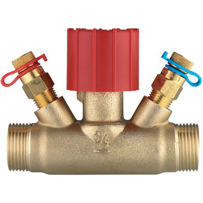 Куќиште од постојан поцинкуван месинг, за хидраулично балансирање на плафонските разладни системи и Fan Coil-ери. 2 мерни вентила (0284) монтирани до точката за регулација, предподесување со ограничување на одот на вретеното. Приклучоци за цевки од двете страни, со надворешен навој и рамно заптивање