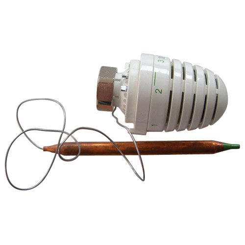 Термостатска глава со притискачки сензор наместен на 52 °C. Термостатска глава со хидросензор, капиларна цевка и притискачки сензор.