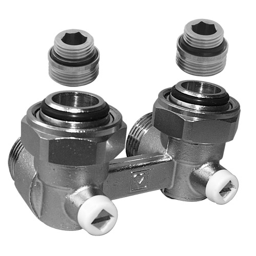 H-вентил за двоцевен систем на греење со 2 приклучни нипли- PROJEKT аголен модел