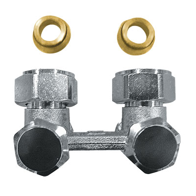 HERZ-3000 бајпас тело за двоцевен систем на греење со двострано празнење, празнење од воздух и затворање, приклучок на грејно тело G 3/4 – аголен модел