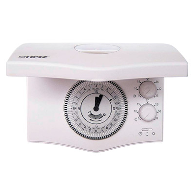 Тајмер со неделна или дневна програма. Дневно и ноќно приспособување на температурата, опсег на приспособување 5–35 °C, регулирање на секои 15 минути. Акумулатор со 2 батерии LR6, AA, 1,5 V. Рок на траење на батериите е приближно 2 години. Прекинувач со 3 позиции за дневено – ноќно временско прекинување. Класа на заштита II, IP 30.